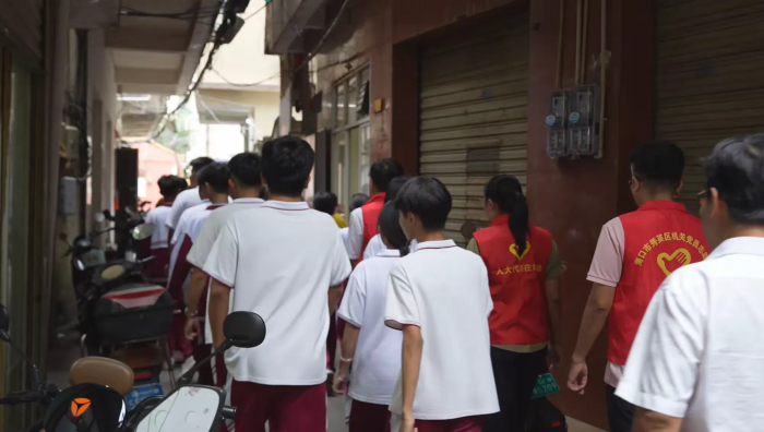 活動以“大代表”帶領“小代表”實地走訪調研書場村巷道為起點,沿途由書場村黨支部書記王瓊軍向小代表們介紹書場村背街小巷的治理經(jīng)驗,包括消防安全、環(huán)境衛(wèi)生整治、“三線整治”等問題,實地了解人大代表監(jiān)督民生實事的履職過程,每一項都與同學們的日常出行息息相關。