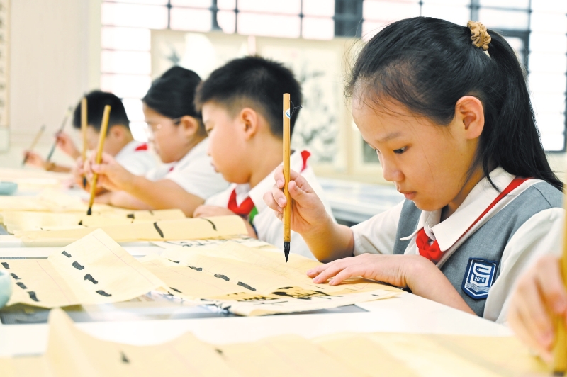 五源河學(xué)校書法課堂引入的智能設(shè)備,可以精準(zhǔn)評估學(xué)生的書寫質(zhì)量。記者 石中華 攝