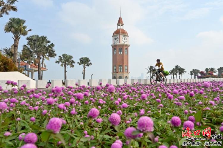 三角梅熱烈綻放,千日紅明艷動(dòng)人……12月9日上午,在??谖骱0队^海臺(tái),綠化工人將一盆盆色彩鮮艷的三角梅、千日紅和黃穗冠等花卉擺放整齊。