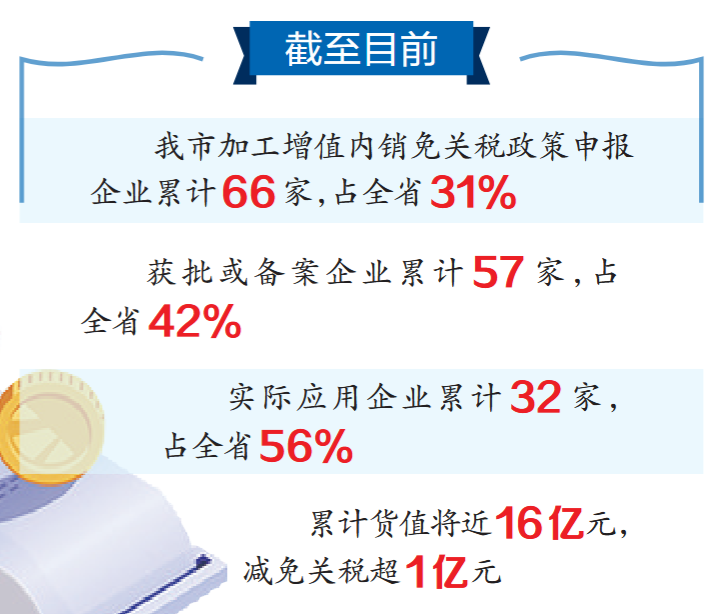 如何讓政策“東風(fēng)”惠及更廣產(chǎn)業(yè)領(lǐng)域?去年,我市將加工增值試點(diǎn)政策拓寬至醫(yī)藥、醫(yī)療器械、食品加工、珠寶加工、裝備制造等行業(yè),切實(shí)推動(dòng)企業(yè)降本增效。