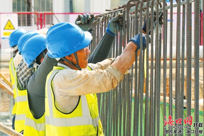 循聲步入工地,眼前是一片忙碌的施工景象?;由钐?,建設(shè)者們頭戴安全帽、身著工作服,分散在各個作業(yè)面上。忙碌的身影不斷穿梭,綁扎、焊接、測量……每一個動作都專注而嫻熟,汗水滴入鋼筋水泥間,一點點澆筑出椰城未來的堅實輪廓。