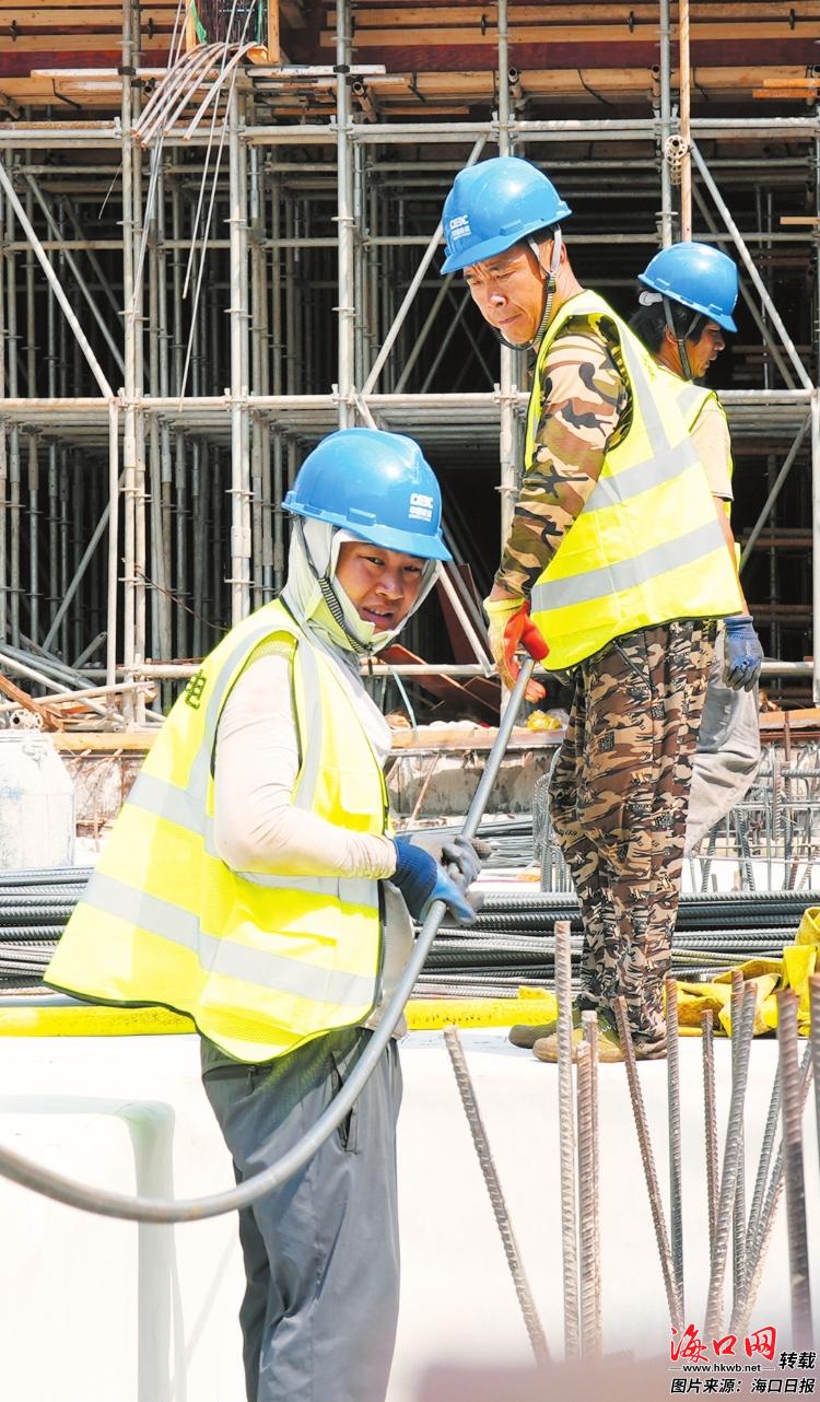 循聲步入工地,眼前是一片忙碌的施工景象?;由钐?,建設(shè)者們頭戴安全帽、身著工作服,分散在各個(gè)作業(yè)面上。忙碌的身影不斷穿梭,綁扎、焊接、測(cè)量……每一個(gè)動(dòng)作都專(zhuān)注而嫻熟,汗水滴入鋼筋水泥間,一點(diǎn)點(diǎn)澆筑出椰城未來(lái)的堅(jiān)實(shí)輪廓。